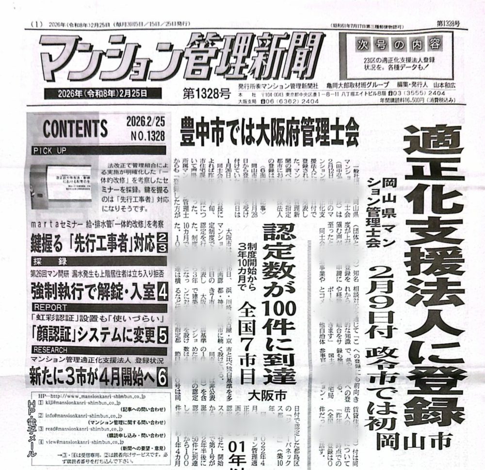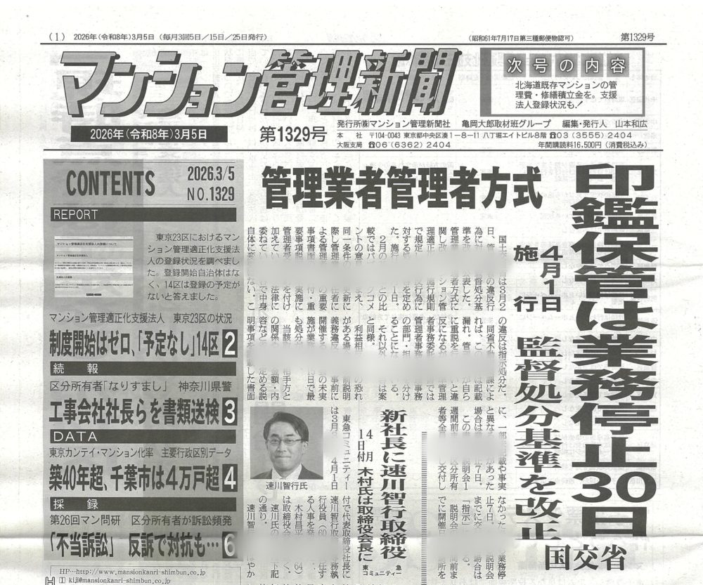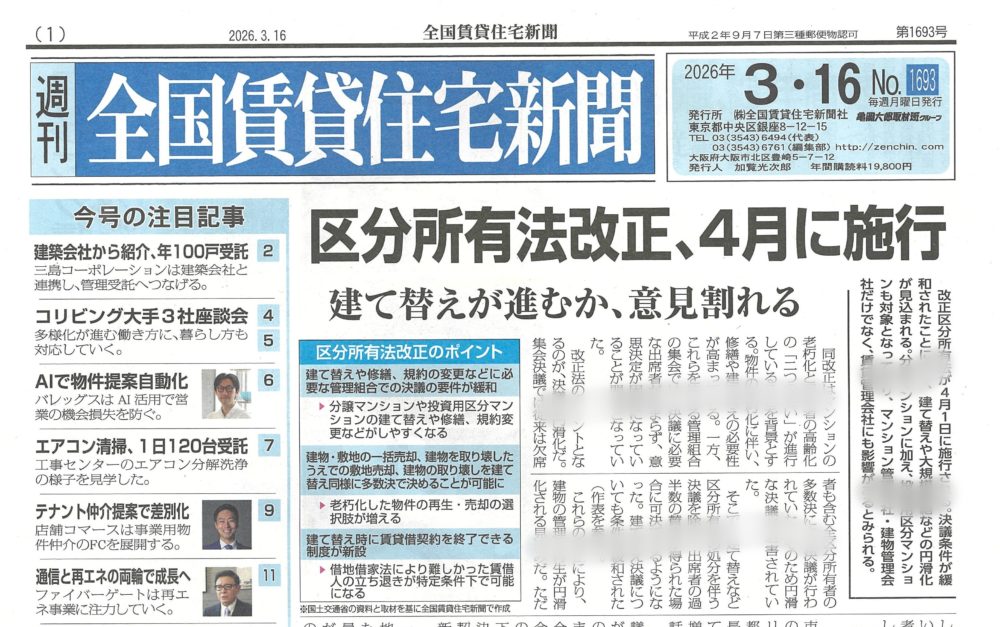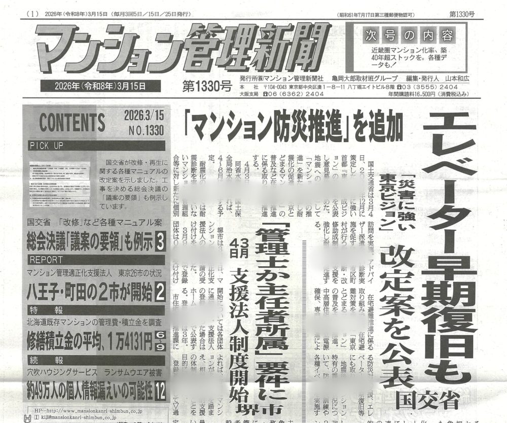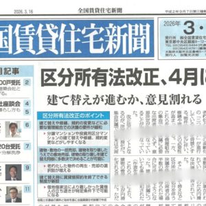 大家さんになりたい人の勉強会(第127回広島大家塾)のご案内 ~毎日ブロ… 2026.04.01 大家塾からのお知らせ 大家さんになりたい人の勉強会(第127回広島大家塾)のご案内… 大家塾からのお知らせ | 2026.04.01 海外投資をしない理由 by 日経読まれた記事ランキング ~毎日ブログ19… 2026.03.31 日経読まれた記事ランキング 海外投資をしない理由 by 日経読まれた記事ランキング ~毎… 日経読まれた記事ランキング | 2026.03.31 止まらない階があるエレベーター ~ 現地調査ワンポイント講座 No.17… 2026.03.30 現地調査ワンポイント講座 止まらない階があるエレベーター ~ 現地調査ワンポイント講座… 現地調査ワンポイント講座 | 2026.03.30 賃貸受給バランスを意識しよう! by 全国賃貸住宅新聞 ~毎日ブログ19… 2026.03.29 賃貸住宅新聞 賃貸受給バランスを意識しよう! by 全国賃貸住宅新聞 ~毎… 賃貸住宅新聞 | 2026.03.29 築46年! 愛知県東郷町で一番古い分譲マンションの見た目年齢をチェック!… 2026.03.28 美マンション探訪 築46年! 愛知県東郷町で一番古い分譲マンションの見た目年齢… 美マンション探訪 | 2026.03.28 建物が凶器になった木造住宅より、命を守った鉄筋コンクリート造マンション … 2026.03.27 マンション管理新聞 建物が凶器になった木造住宅より、命を守った鉄筋コンクリート造… マンション管理新聞 | 2026.03.27 築59年!名古屋市緑区で一番古いマンションの若返り策とは? by 美マン… 2026.03.26 「美マンション」レベルチェック 築59年!名古屋市緑区で一番古いマンションの若返り策とは? … 「美マンション」レベルチェック | 2026.03.26 いよいよ改正区分所有法の施行が間近! 楽しみですね~ by 全国賃貸住宅… 2026.03.25 賃貸住宅新聞 いよいよ改正区分所有法の施行が間近! 楽しみですね~ by … 賃貸住宅新聞 | 2026.03.25 スキップフロア型のマンションをどう考える? ~ 現地調査ワンポイント講座… 2026.03.24 現地調査ワンポイント講座 スキップフロア型のマンションをどう考える? ~ 現地調査ワン… 現地調査ワンポイント講座 | 2026.03.24 サラリーマンの間に資産収入を確保する! by 日経読まれた記事ランキング… 2026.03.23 日経読まれた記事ランキング サラリーマンの間に資産収入を確保する! by 日経読まれた記… 日経読まれた記事ランキング | 2026.03.23 築59年! 名古屋市緑区で一番古い分譲マンションの見た目年齢をチェック!… 2026.03.22 美マンション探訪 築59年! 名古屋市緑区で一番古い分譲マンションの見た目年齢… 美マンション探訪 | 2026.03.22 個人経営と法人経営、どっちがいいの? by 地主と家主 ~毎日ブログ19… 2026.03.21 家主と地主 個人経営と法人経営、どっちがいいの? by 地主と家主 ~毎… 家主と地主 | 2026.03.21 築65年!愛知県春日井市で一番古いマンションの若返り策とは? by 美マ… 2026.03.20 「美マンション」レベルチェック 築65年!愛知県春日井市で一番古いマンションの若返り策とは?… 「美マンション」レベルチェック | 2026.03.20 入居者募集で最も重要なこと by 全国賃貸住宅新聞 ~毎日ブログ1959… 2026.03.19 賃貸住宅新聞 入居者募集で最も重要なこと by 全国賃貸住宅新聞 ~毎日ブ… 賃貸住宅新聞 | 2026.03.19 ゴミ屋敷の部屋があるマンションをどう考える? ~ 現地調査ワンポイント講… 2026.03.18 現地調査ワンポイント講座 ゴミ屋敷の部屋があるマンションをどう考える? ~ 現地調査ワ… 現地調査ワンポイント講座 | 2026.03.18 マンション管理業者に対する処分が改正されました! by マンション管理新… 2026.03.17 マンション管理新聞 マンション管理業者に対する処分が改正されました! by マン… マンション管理新聞 | 2026.03.17 築65年! 愛知県春日井市で一番古い分譲マンションの見た目年齢をチェック… 2026.03.16 美マンション探訪 築65年! 愛知県春日井市で一番古い分譲マンションの見た目年… 美マンション探訪 | 2026.03.16 僕が高級車を買う時はいつ? by 日経読まれた記事ランキング ~毎日ブロ… 2026.03.15 日経読まれた記事ランキング 僕が高級車を買う時はいつ? by 日経読まれた記事ランキング… 日経読まれた記事ランキング | 2026.03.15 築51年!長野県茅野市で一番古いマンションの若返り策とは? by 美マン… 2026.03.14 「美マンション」レベルチェック 築51年!長野県茅野市で一番古いマンションの若返り策とは? … 「美マンション」レベルチェック | 2026.03.14 適正なマンション管理ができる仕組みが進んでいます!by マンション管理新… 2026.03.13 マンション管理新聞 適正なマンション管理ができる仕組みが進んでいます!by マン… マンション管理新聞 | 2026.03.13 ホテル併設の分譲マンションってどうですか? ~ 現地調査ワンポイント講座… 2026.03.12 現地調査ワンポイント講座 ホテル併設の分譲マンションってどうですか? ~ 現地調査ワン… 現地調査ワンポイント講座 | 2026.03.12 不動産価格上昇で賃貸の未来は明るいのか? by 全国賃貸住宅新聞 ~毎日… 2026.03.11 賃貸住宅新聞 不動産価格上昇で賃貸の未来は明るいのか? by 全国賃貸住宅… 賃貸住宅新聞 | 2026.03.11 築51年!長野県茅野市で一番古い分