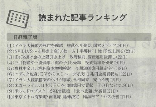 日経「読まれた記事ランキング」