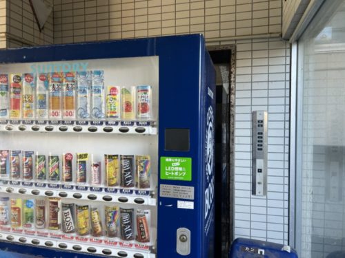 自動販売機で隠されてます。