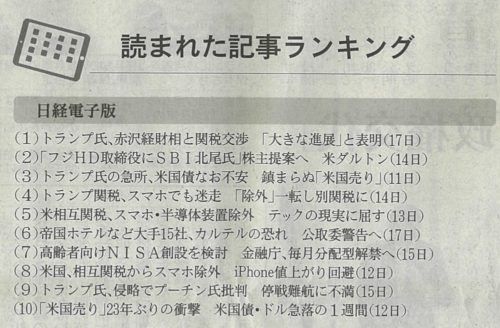 日経「読まれた記事ランキング」
