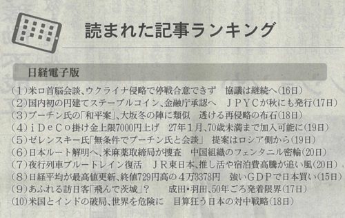 日経「読まれた記事ランキング」