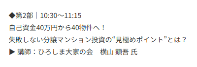 2019年からは少人数制オンラインセミナーを開始し、すでに10物件以上の分譲マンションを保有する実践者を複数輩出。それを機に全国コミュニティ「分譲マンションオーナーズ倶楽部」を設立。2025年5月現在、21名の会員が在籍している。