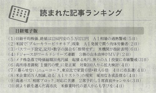 日経「読まれた記事ランキング」