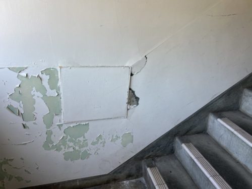 壁面にはひび割れが