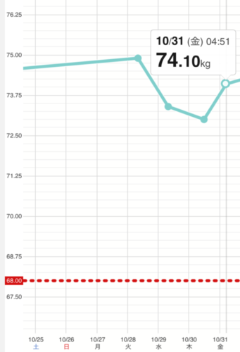 10月の体重は74.1kgでした。