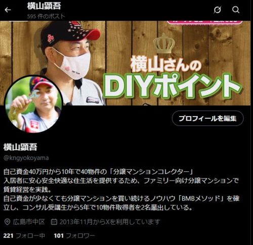 2019年からは少人数制オンラインセミナーを開始し、すでに10物件以上の分譲マンションを保有する実践者を複数輩出。それを機に全国コミュニティ「分譲マンションオーナーズ倶楽部」を設立。2025年5月現在、21名の会員が在籍している。