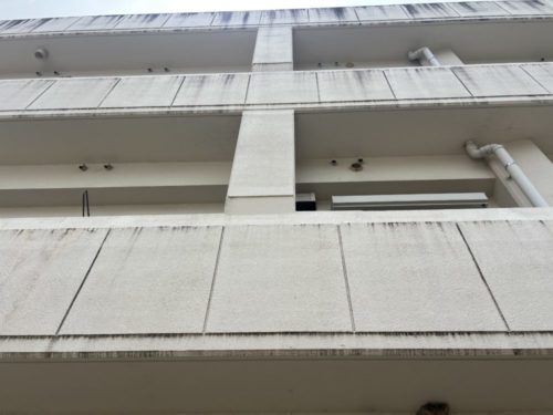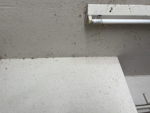 雨水の汚れが目立ちます。