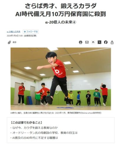 【この記事でわかること】・なぜ今、カラダを鍛える教育なのか・オードリー・タン氏の母創設の学校、教育の目玉は・AI普及の2040年代に不足する職種は