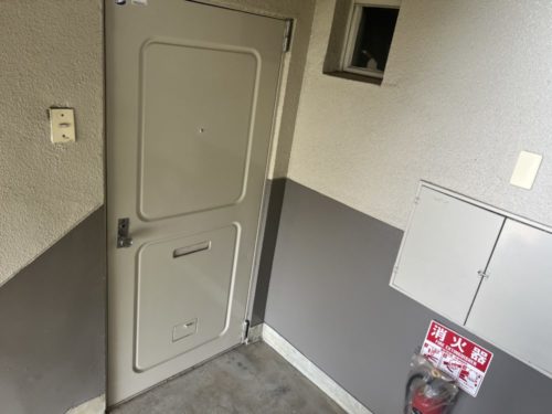 耐火性能の低い鉄製の扉です。