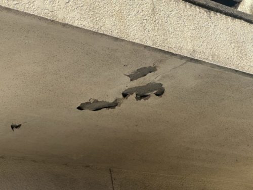 特に鉄部のサクからの汚れが目立ちます。