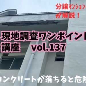 現地調査ワンポイント講座 特殊事情がある部屋があったらしっかり調査しよう! ~ 現地調査ワンポイン… 2025.07.28 現地調査ワンポイント講座 特殊事情がある部屋があったらしっかり調査しよう! ~ 現地調… 現地調査ワンポイント講座 | 2025.07.28 コンクリートが落ちると危険です! ~ 現地調査ワンポイント講座 No.1… 2025.07.21 現地調査ワンポイント講座 コンクリートが落ちると危険です! ~ 現地調査ワンポイント講… 現地調査ワンポイント講座 | 2025.07.21 帰ったらエレベーターが使えない! なぜ? ~ 現地調査ワンポイント講座 … 2025.07.15 現地調査ワンポイント講座 帰ったらエレベーターが使えない! なぜ? ~ 現地調査ワンポ… 現地調査ワンポイント講座 | 2025.07.15 壁からのサビは要注意! ~ 現地調査ワンポイント講座 No.135 2025.07.06 現地調査ワンポイント講座 壁からのサビは要注意! ~ 現地調査ワンポイント講座 No.… 現地調査ワンポイント講座 | 2025.07.06 窓のデザインが部屋で異なるってどういうこと? ~ 現地調査ワンポイント講… 2025.06.30 現地調査ワンポイント講座 窓のデザインが部屋で異なるってどういうこと? ~ 現地調査ワ… 現地調査ワンポイント講座 | 2025.06.30 雨水の排水管はどこにある? ~ 現地調査ワンポイント講座 No.133 2025.06.23 現地調査ワンポイント講座 雨水の排水管はどこにある? ~ 現地調査ワンポイント講座 N… 現地調査ワンポイント講座 | 2025.06.23 ヒビ割れは能登半島地震で発生したのか? in 石川県内灘町 ~ 現地調査… 2025.06.17 現地調査ワンポイント講座 ヒビ割れは能登半島地震で発生したのか? in 石川県内灘町 … 現地調査ワンポイント講座 | 2025.06.17 建物が壊れたのは地震が原因? それとも・・・? ~ 現地調査ワンポイント… 2025.06.11 現地調査ワンポイント講座 建物が壊れたのは地震が原因? それとも・・・? ~ 現地調査… 現地調査ワンポイント講座 | 2025.06.11 震度6強の能登半島地震!石川県七尾市で一番古い分譲マンションの現地調査!… 2025.06.05 現地調査ワンポイント講座 震度6強の能登半島地震!石川県七尾市で一番古い分譲マンション… 現地調査ワンポイント講座 | 2025.06.05 調査動画あり! 携帯基地局のプラスとマイナス! ~ 現地調査ワンポイント… 2025.05.30 現地調査ワンポイント講座 調査動画あり! 携帯基地局のプラスとマイナス! ~ 現地調査… 現地調査ワンポイント講座 | 2025.05.30 調査動画あり! 柱の太さについて ~ 現地調査ワンポイント講座 No.1… 2025.05.24 現地調査ワンポイント講座 調査動画あり! 柱の太さについて ~ 現地調査ワンポイント講… 現地調査ワンポイント講座 | 2025.05.24 雨漏りを防ぐ塗膜防水って何? ~現地調査ワンポイント講座 No.127 2025.05.16 現地調査ワンポイント講座 雨漏りを防ぐ塗膜防水って何? ~現地調査ワンポイント講座 N… 現地調査ワンポイント講座 | 2025.05.16 マンション名が2つ? どういうこと? ~ 現地調査ワンポイント講座 No… 2025.05.10 現地調査ワンポイント講座 マンション名が2つ? どういうこと? ~ 現地調査ワンポイン… 現地調査ワンポイント講座 | 2025.05.10 ワンルームマンションを買うならどっち? ~ 現地調査ワンポイント講座 N… 2025.05.04 現地調査ワンポイント講座 ワンルームマンションを買うならどっち? ~ 現地調査ワンポイ… 現地調査ワンポイント講座 | 2025.05.04 調査動画あり! 築古だからわかる新築時の工法! ~ 現地調査ワンポイント… 2025.04.28 現地調査ワンポイント講座 調査動画あり! 築古だからわかる新築時の工法! ~ 現地調査… 現地調査ワンポイント講座 | 2025.04.28 調査動画あり! 屋上ってどうメンテナンスするの? ~ 現地調査ワンポイン… 2025.04.22 現地調査ワンポイント講座 調査動画あり! 屋上ってどうメンテナンスするの? ~ 現地調… 現地調査ワンポイント講座 | 2025.04.22 調査動画あり! 彩りある壁面ってどうするの? ~ 現地調査ワンポイント講… 2025.04.15 現地調査ワンポイント講座 調査動画あり! 彩りある壁面ってどうするの? ~ 現地調査ワ… 現地調査ワンポイント講座 | 2025.04.15 調査動画あり! カドに窓があるマンションの注意点 ~ 現地調査ワンポイン… 2025.04.09 現地調査ワンポイント講座 調査動画あり! カドに窓があるマンションの注意点 ~ 現地調… 現地調査ワンポイント講座 | 2025.04.09 保存版! 現地調査ワンポイント講座 No.1-120を体系的にまとめます… 2025.04.03 現地調査ワンポイント講座 保存版! 現地調査ワンポイント講座 No.1-120を体系的… 現地調査ワンポイント講座 | 2025.04.03 現地調査ワンポイント講座 No.101-120を項目別にまとめます! ~… 2025.03.31 現地調査ワンポイント講座 現地調査ワンポイント講座 No.101-120を項目別にまと… 現地調査ワンポイント講座 | 2025.03.31 調査動画あり! 独立したバルコニーのデメリット! ~ 現地調査ワンポイン… 2025.03.29 現地調査ワンポイント講座 調査動画あり! 独立したバルコニーのデメリット! ~ 現地調… 現地調査ワンポイント講座 | 2025.03.29 調査動画あり! 津波の避難場所となるマンションとは? ~ 現地調査ワンポ… 2025.03.22 現地調査ワンポイント講座 調査動画あり! 